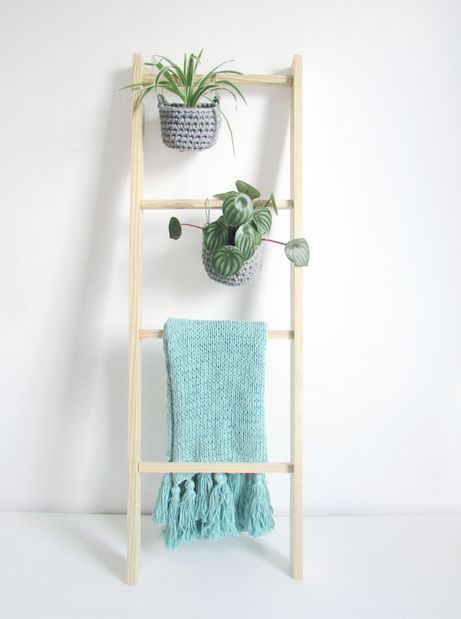 Pode ser usada para organizar mantas, lenços, chapéus, bolsas e outros acessórios. Também como cabideiro ou toalheiro e junto com os nossos cestos de crochê com ganchos, ela pode virar jardineira ou horta vertical.
